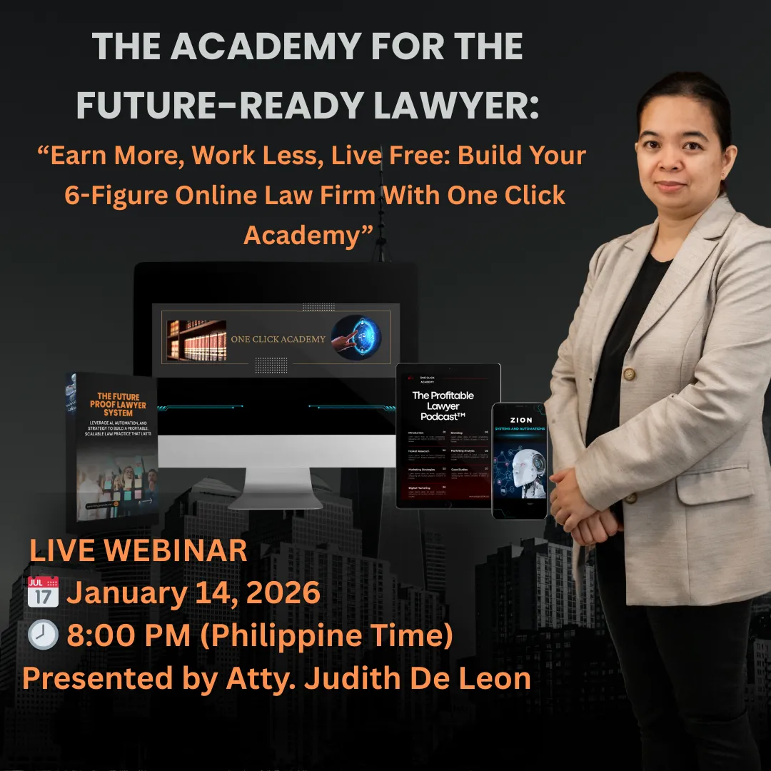 As a lawyer, sanay ako na puro referrals lang yung source ng clients ko. Pero lately, napansin ko na hindi na siya enough. Buti na lang may One Click Academy. Tinuruan nila ako paano gamitin ang content at AI para maipakita yung expertise ko online.